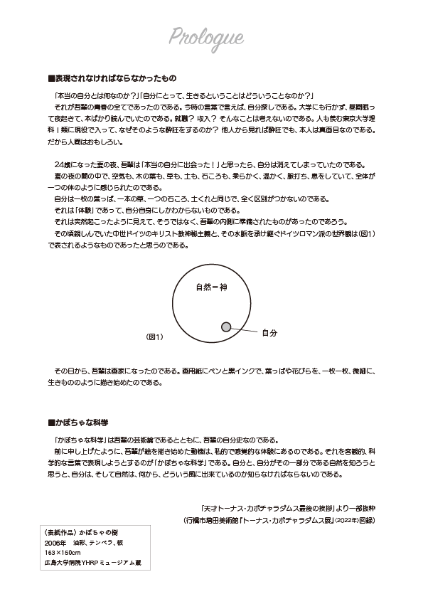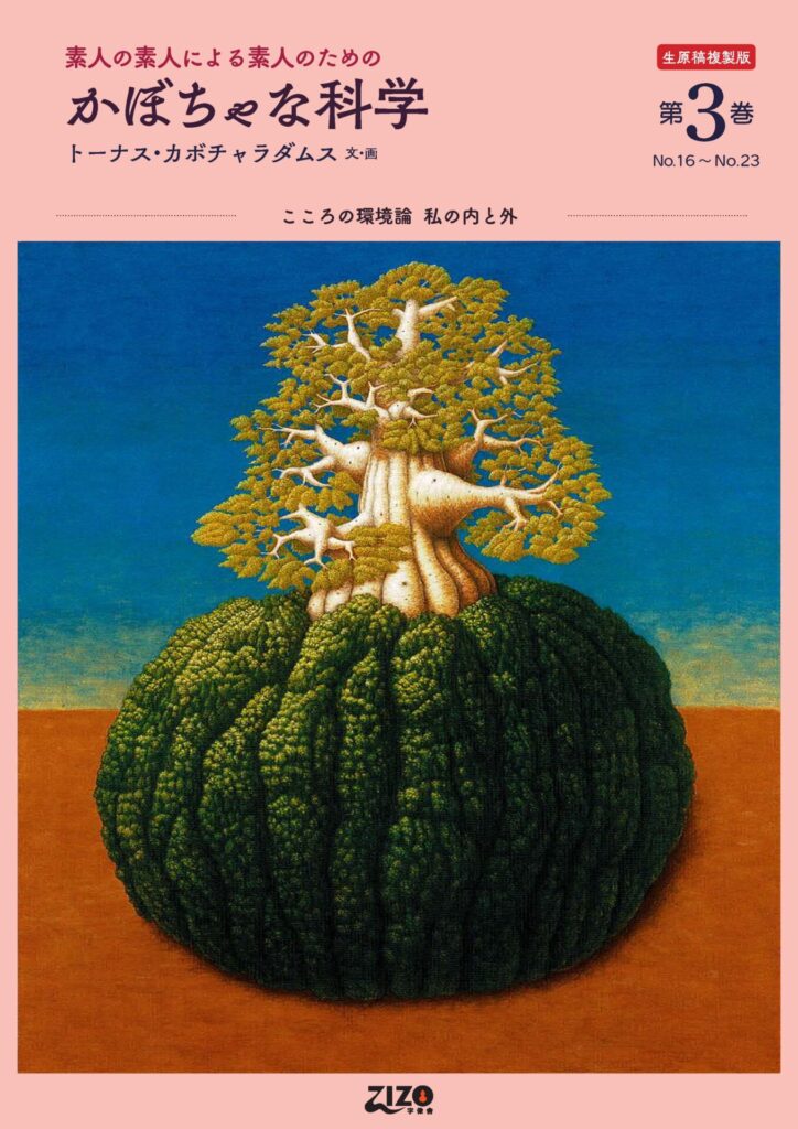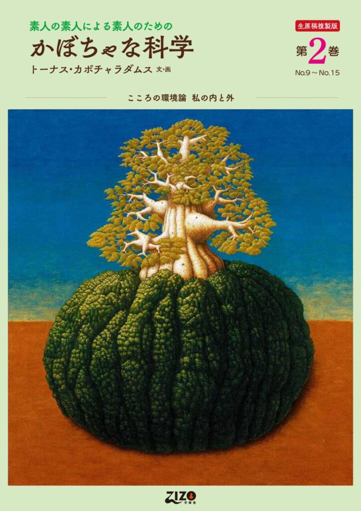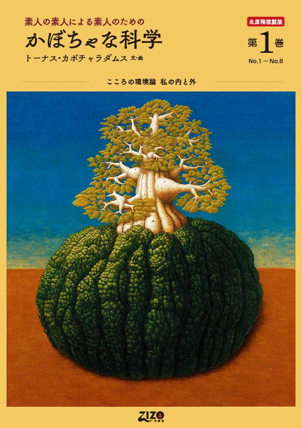自分とは、人間とは、世界とはいかなるメカニズムによって存在しているのか。「かぼちゃな科学」はそうした根源的な問いを立て、ネコチンスキー公爵とトーナス・カボチャラダムスの二人(猫なので二匹)によって、科学的に読み解いていくという、知的でユニークな読みものとなっています。そもそも人類は進化しているのか?世界はどのように成立しているのか?人間を人間たらしめている条件とは?環境とは?…トーナス画伯の描く世界「カボチャドキヤ」にも、「かぼちゃな科学」にも、そのような問いが原点にあります。「かぼちゃな科学」は科学エッセイである前にトーナス画伯の作品にほかなりません。トーナス画伯にとって芸術と科学に線引きなどないのです。