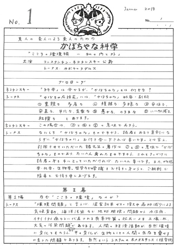 トーナス・カボチャラダムス画伯の手書き科学エッセイです。ネコチンスキー公爵とトーナス・カボチャラダムスの二匹の猫によるゆかいな対話を交わしながら世界の原点を探究します。手書き原稿ですので、書き直している箇所の痕跡もあえて残して掲載しています。